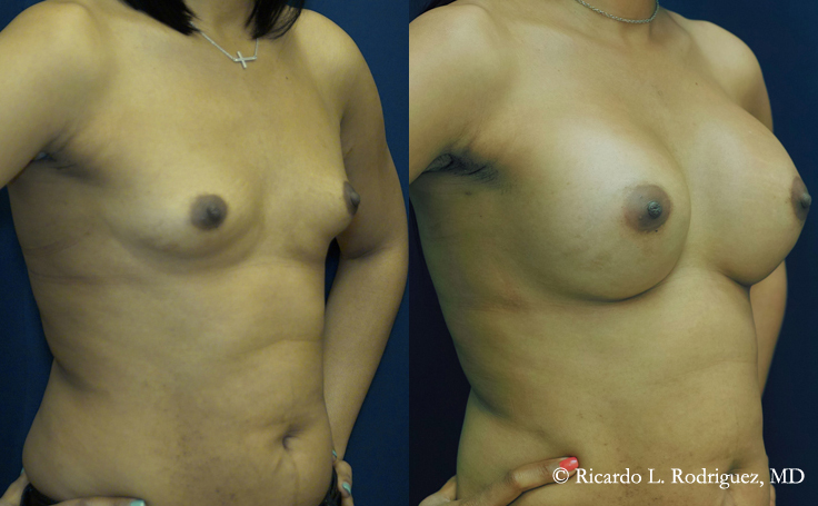 Dr. Rodriguez performed Breast Augmentation on this 5 ft 3 inch, 127-pound female with 350 cc High-Profile silicone implants.