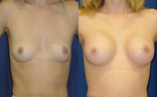 For this petite patient, Dr. Rodriguez placed 280 cc silicone breast implants behind her chest muscles via infra-areolar nipple incisions, giving her undetectable scars. The procedure was performed while the patient was under IV sedation anesthesia in Dr. Rodriguez’ Baltimore, surgical facility.